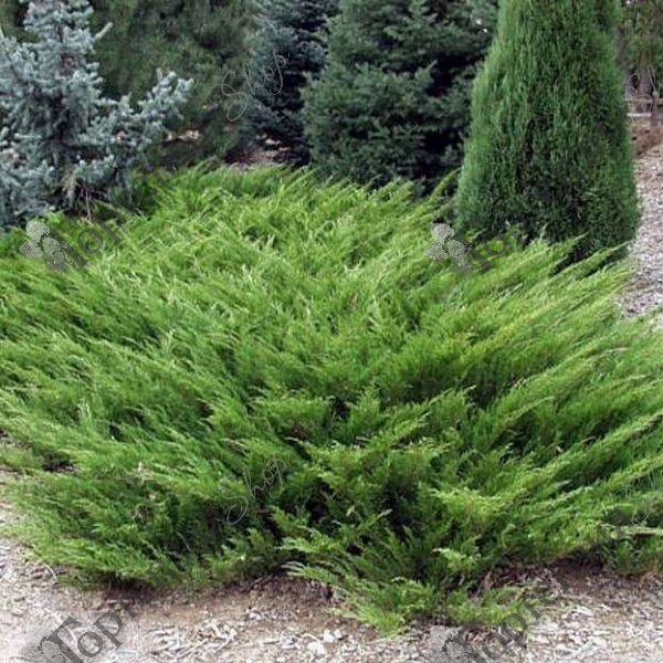 Можжевельник казацкий (Juniperus sabina): невысокий стелющийся кустарник, высотой до 100 см.В высоту растет довольно медленно, способен быстро разрастаться в ширину. Хвоя: у молодых растений игловидная, прямостоячая, сверху синевато-зеленая, мягкая, с четко выделяющейся срединной жилкой; у взрослых растений хвоя чешуевидная.Плоды: шишкоягоды округло-овальные длиной 5-12 мм, буро-черные с сизым налетом, содержат 2-4 семени. Несъедобные. Хорошо выглядит и в одиночных посадках, и в сочетании с другими хвойными, и в комбинации с листопадными деревьями и кустарниками.
