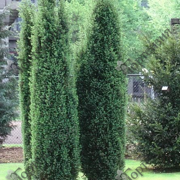 Можжевельник обыкновенный Хиберника (Juniperus communis Hibernica) - хвойный вечнозеленый колонновидный кустарник с густой колонновидной кроной. Ветви прямые, плотно прижатые к стволу, растут вверх. Высота взрослого растения – 4 м, диаметр – 1,5 м. Темп роста медленный. Годовой прирост составляет 15 см. в высоту и 5 см. , а набрав максимальную для сорта высоту, начинает уплотняться и разрастаться в ширину. Хвоя в период вегетации зеленовато-сизая, а зимой темно-зеленая, игольчатая, не колючая.
