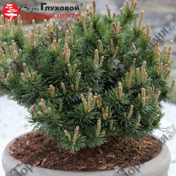 Сосна горная Klostergrun (Клостерган) - шарообразный карликовый представитель хвойных. Крона отличается густотой, благодаря чему кустарник преобретает объем и пышность. Отличается круглой формой, высота и диаметр приближенны, примерно  до 1,5 м. Имеет  зелёный окрас, хвоинки длиной по 5 см. Предпочитает солнечное местоположение. Засухоустойчив и не нуждается в дополнительном поливе. Может расти на почвах любого состава и любой плодородности, но рекомендуется хорошо дренированная. Морозы переносит легко и без последствий. Растёт даже на каменистых почвах. За свою устойчивость к окружающей среде и способность расти в условиях города, популярен в городах России. Подходит для посадки на небольших приусадебных участках, используется в хвойных комбинациях и смешанных композициях. Рекомендуется сажать в тандеме с карликовыми растени