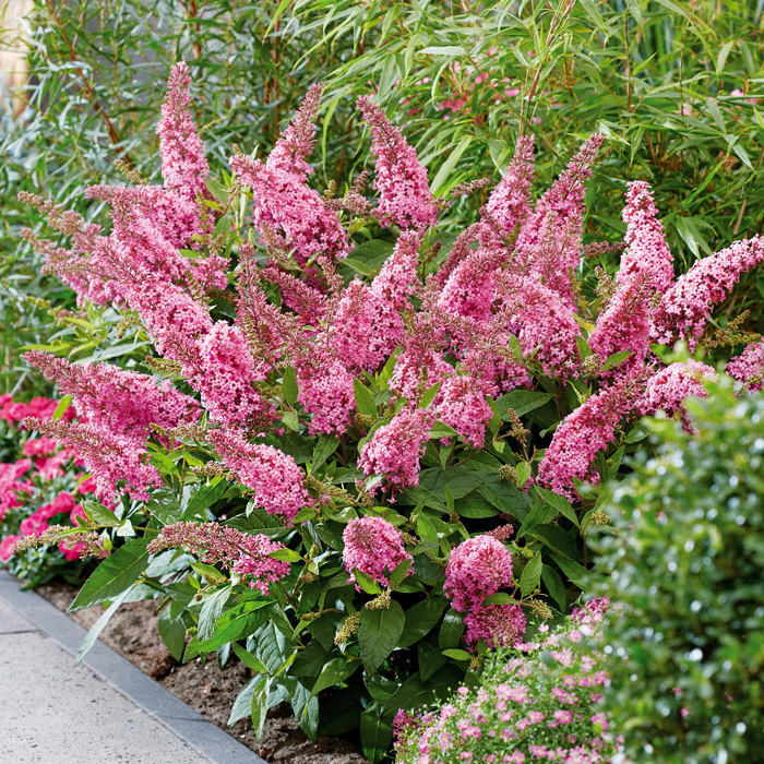 Сорт из новой серии буддлеи Butterfly Candy  компактный размер, очень обильное цветение; идеально подходит для контейнеров и небольших садов.Куст очень компактного размера с аккуратной округлой формой. Цветки имеют легкий сладкий аромат и очень привлекательны для бабочек и пчел. Красиво цветет розовыми колосовидными соцветиями, привлекающими бабочек. Предпочитает солнечные места, защищенные от ветра и сквозняков. В июле-августе на стеблях развивается множество цветков ярко-розового цвета.