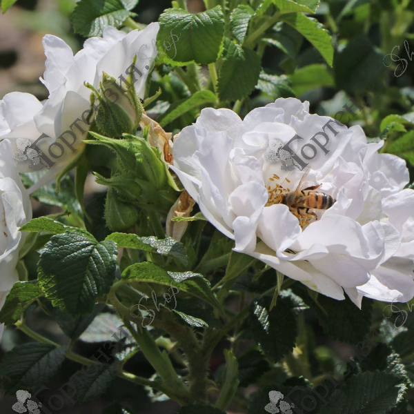 Кусты густые, сильно разветвлённые, грациозные, высотой 60 см и шириной 50 см. Листья темно-зеленые, морщинистые, непарноперистые, Цветки чисто-белые, полумахровые(9-16 лепестков), диаметром 5 см, с интенсивным ароматом. Цветение раннее, повторное с июня по сентябрь. Почвы предпочитает плодородные, гумусированные, влажные. В ландшафте используют в одинойчной и групповой посадке или как элемент живой изгороди. Морозостойкость высокая.