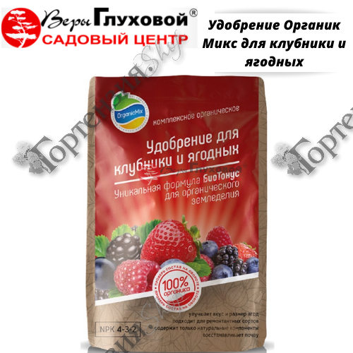 Оптимально для любых сортов клубники, смородины, малины, крыжовника, других ягодных культур. NPK 4-3-2.